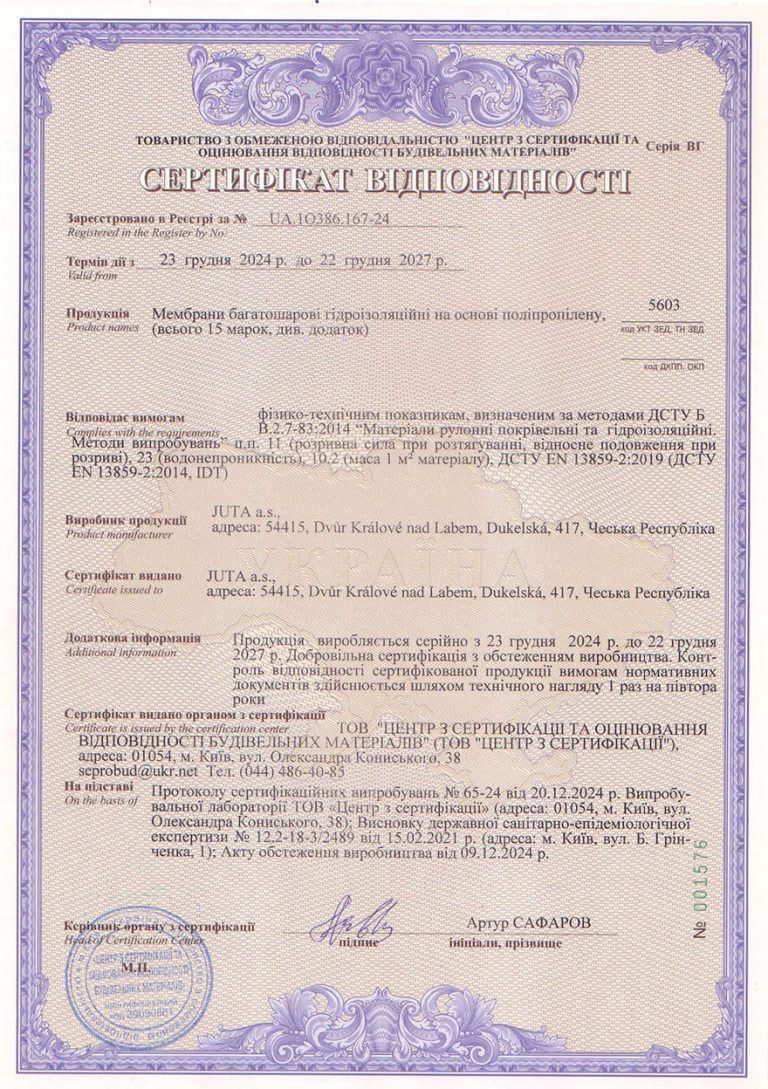 JUTA a.s. — один із найбільших виробників плівок і мембран у Європі. Продукція виготовляється на власних заводах у Чехії — від сировини до готового рулону — з багаторівневим контролем якості, що гарантує надійність і стабільні технічні характеристики. JUTA понад 75 років розробляє професійні рішення для гідро-, паро- та вітрозахисту дахів і фасадів, які витримують перепади температур, сильні вітри та багаторічне навантаження.